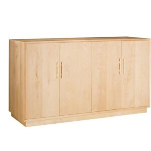 The Modern Sideboard is a large versatile storage cabinet. With a clean simple design, this Modern credenza has two set of doors and adjustable shelves inside. The case is a miter wrap with a beveled edge detail.