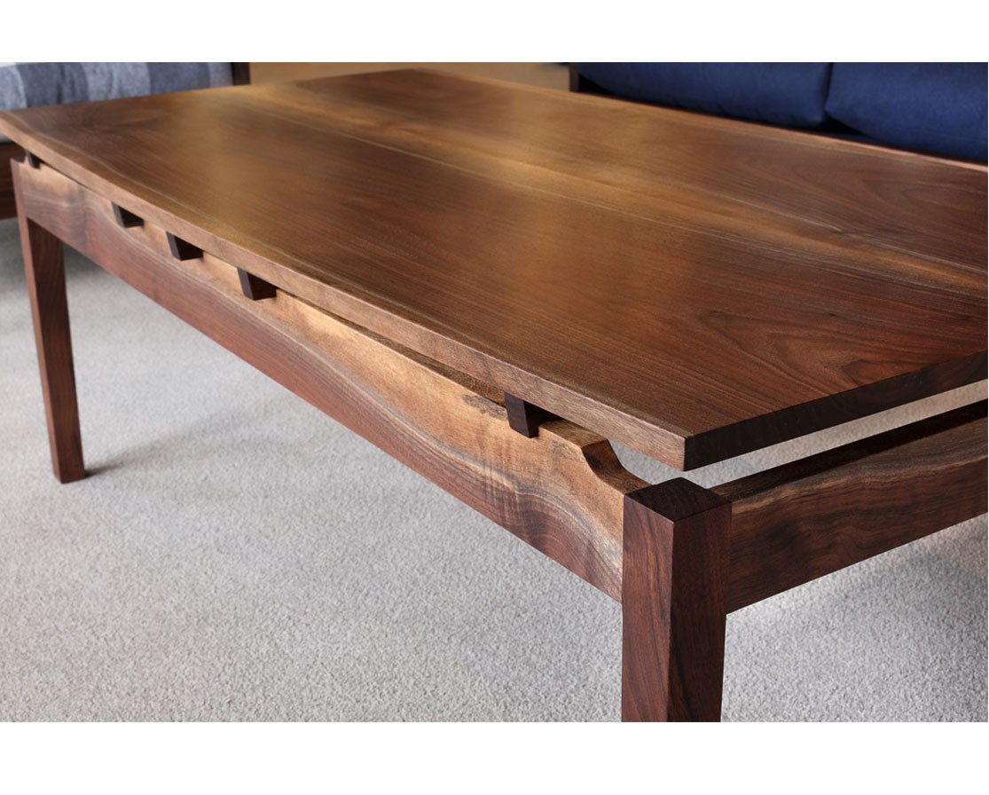The Hochberg coffee table is our contemporary take on traditional table design. It features the signature Hochberg risers that give the illusion of a floating top. These risers can be made out of the standard wood species or a contrasting wood. This coffee table also has a slight curve on the top to give it a slight boat shape. It pairs nicely with the Pacific living room seating group and other Hochberg occasional tables.