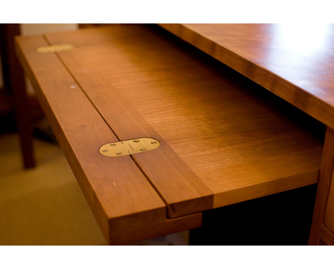 Handcrafted in Portland, Oregon, the Ironside Desk is a classic that features ample storage while still maintaining a delicate footprint. The back of the desk is beautifully detailed with frame and panel construction, which allows this back to be just as beautiful as the front. Storage on this piece includes a file drawer on one side, two drawers on the other, and an optional for the center piece to either have a pencil drawer, keyboard pullout, or ergonomic keyboard tray.