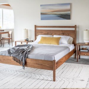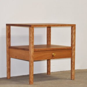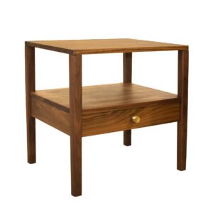The Maud nightstand features a clean, modern aesthetic with unique joinery details. Designed to coordinate with the Maud family of products, this handmade modern wood nightstand features thru wedged tenons and round overs on the legs and corners.
