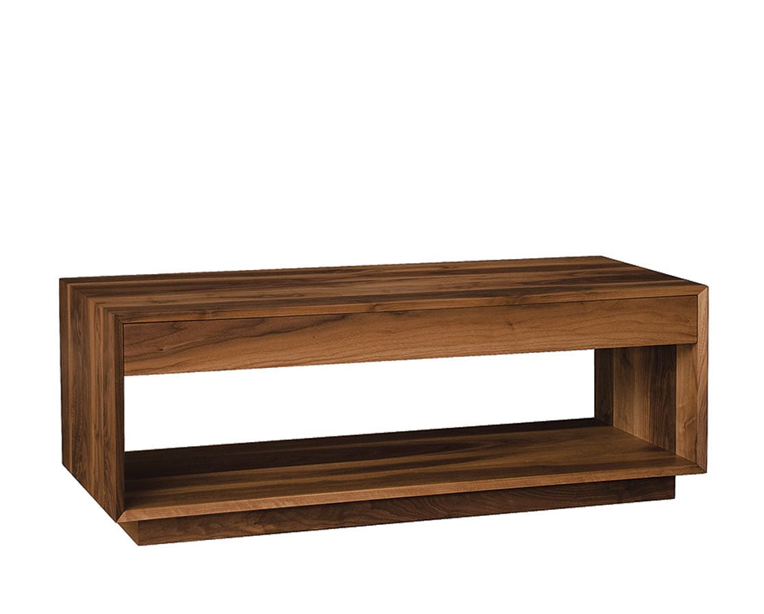 The Modern coffee table is a beautiful clean design that highlights the beauty of the wood with the waterfall of grain down the sides. It also features one large drawer on the front that blends in with the design.