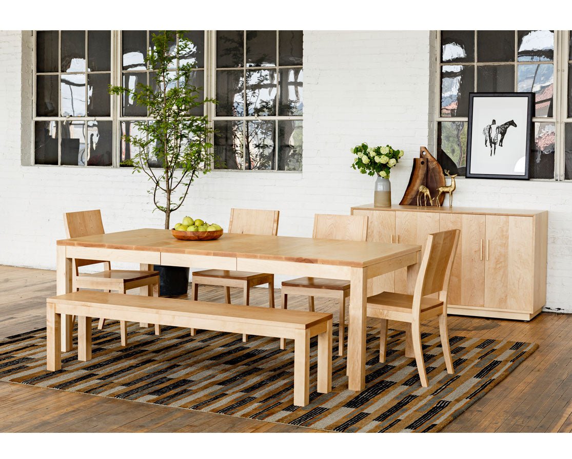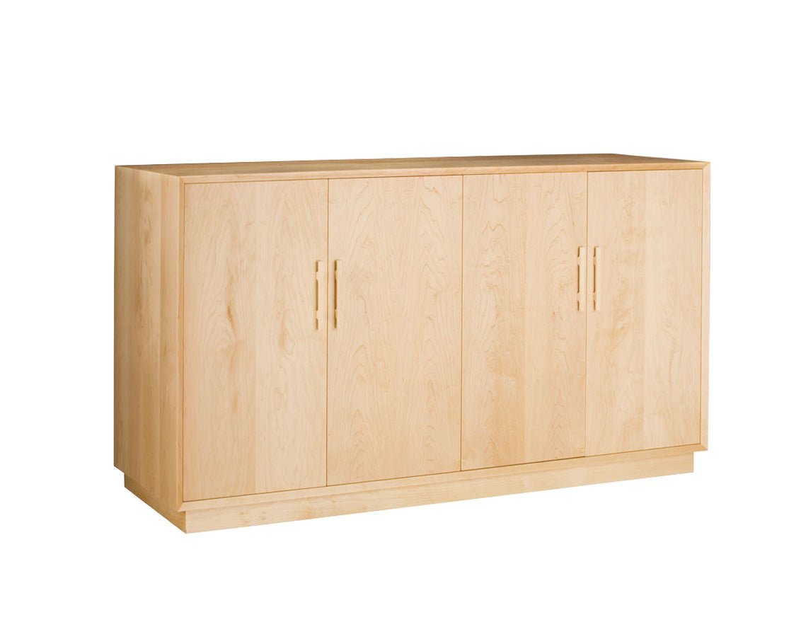 The Modern Sideboard is a large versatile storage cabinet. With a clean simple design, this Modern credenza has two set of doors and adjustable shelves inside. The case is a miter wrap with a beveled edge detail.