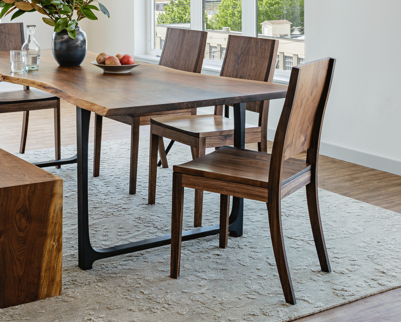 The Studio Dining Chair is handcrafted ?with bookmatched panels, curved back support and traditional mortise and tenon joinery construction. This contemporary wood dining chair pairs beautifully with our Studio Dining Table and Studio Bench. Each piece is handcrafted in our Portland, OR woodshop.?